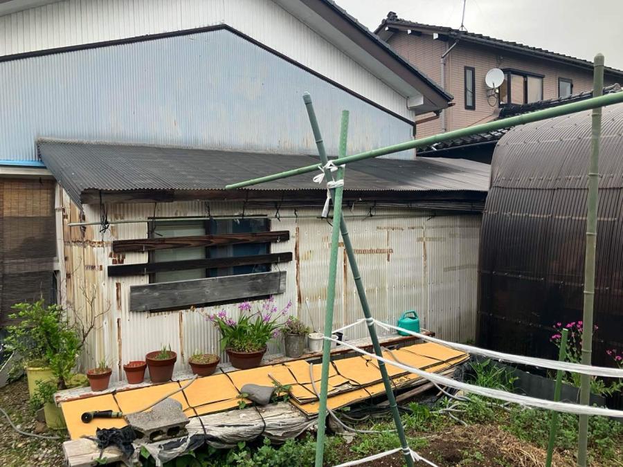 お客様が以前建てられた納屋ですがだいぶトタンもポリカも古くなってきました