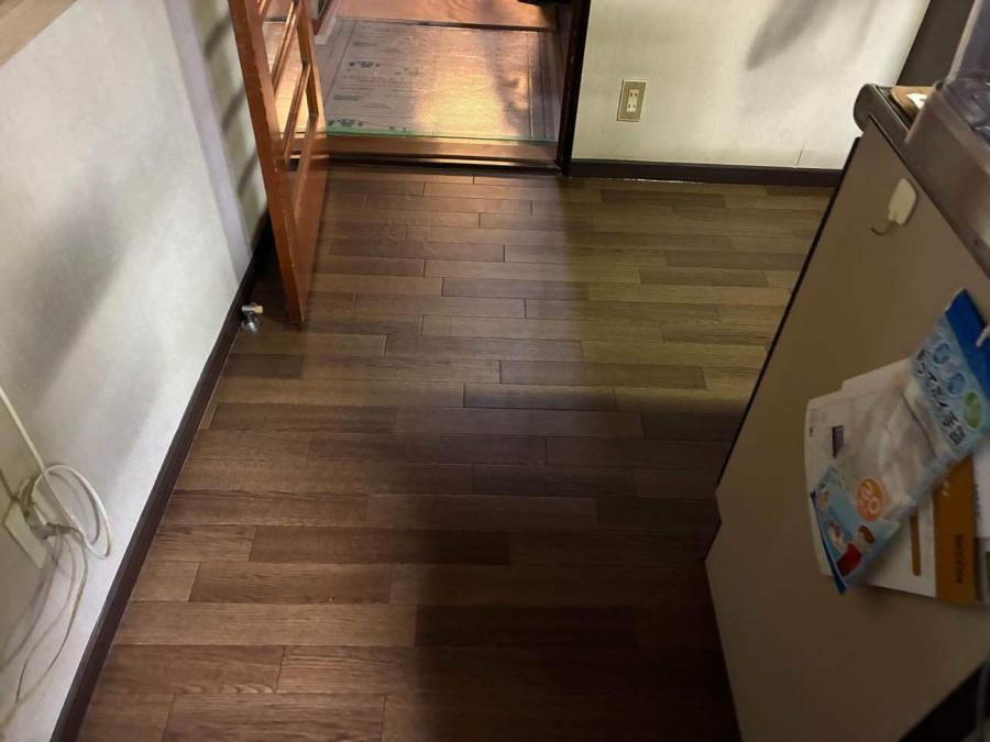 実際に長尺シートを張った現場です。金額を抑えて硬めの床材にしたいということで施工しました。