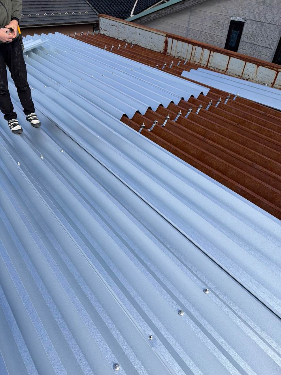 屋根は折半の重ね貼りを行ってます