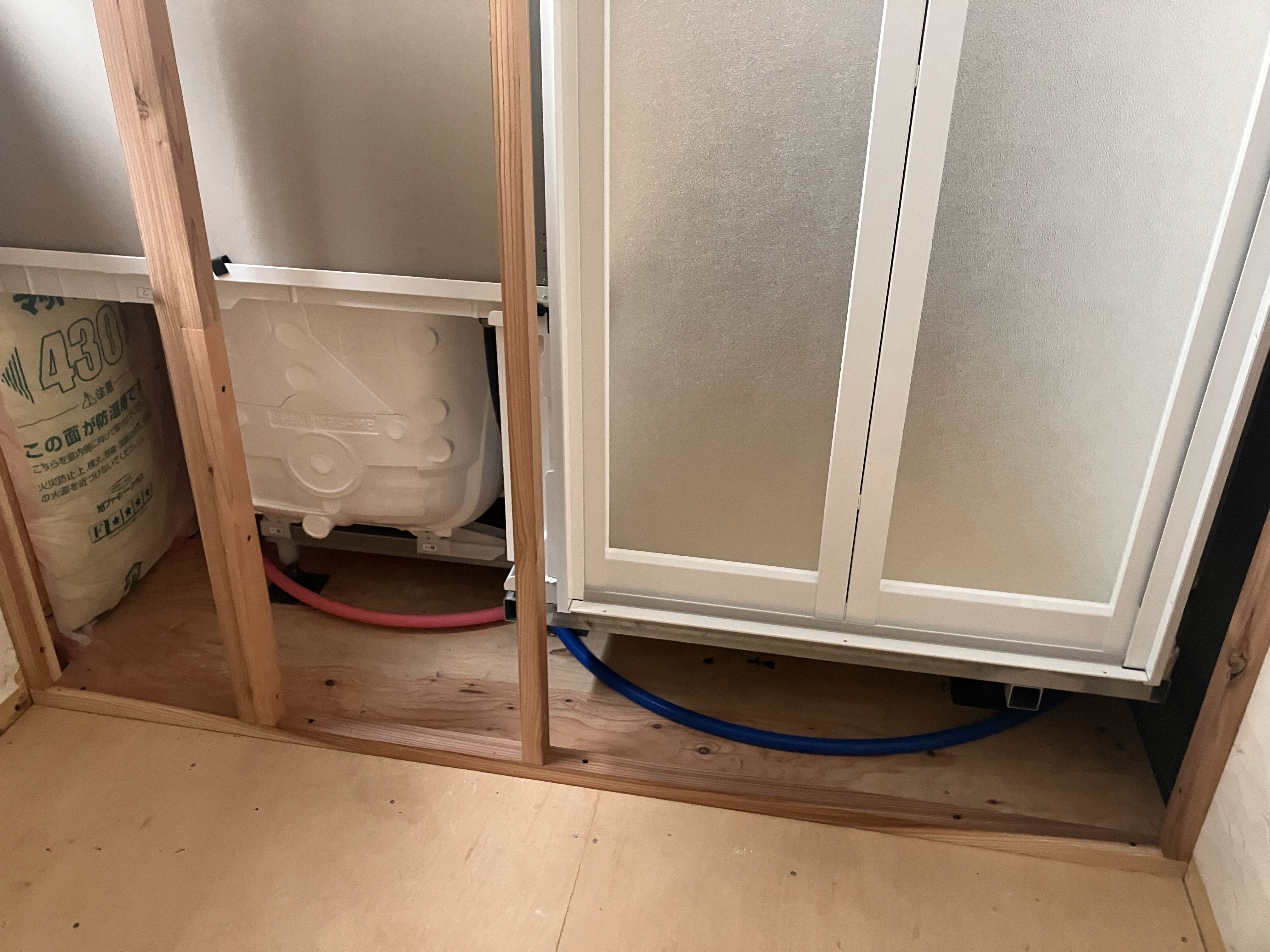 床を重ね、壁には断熱材も入れてユニットバス組み上がりました✨