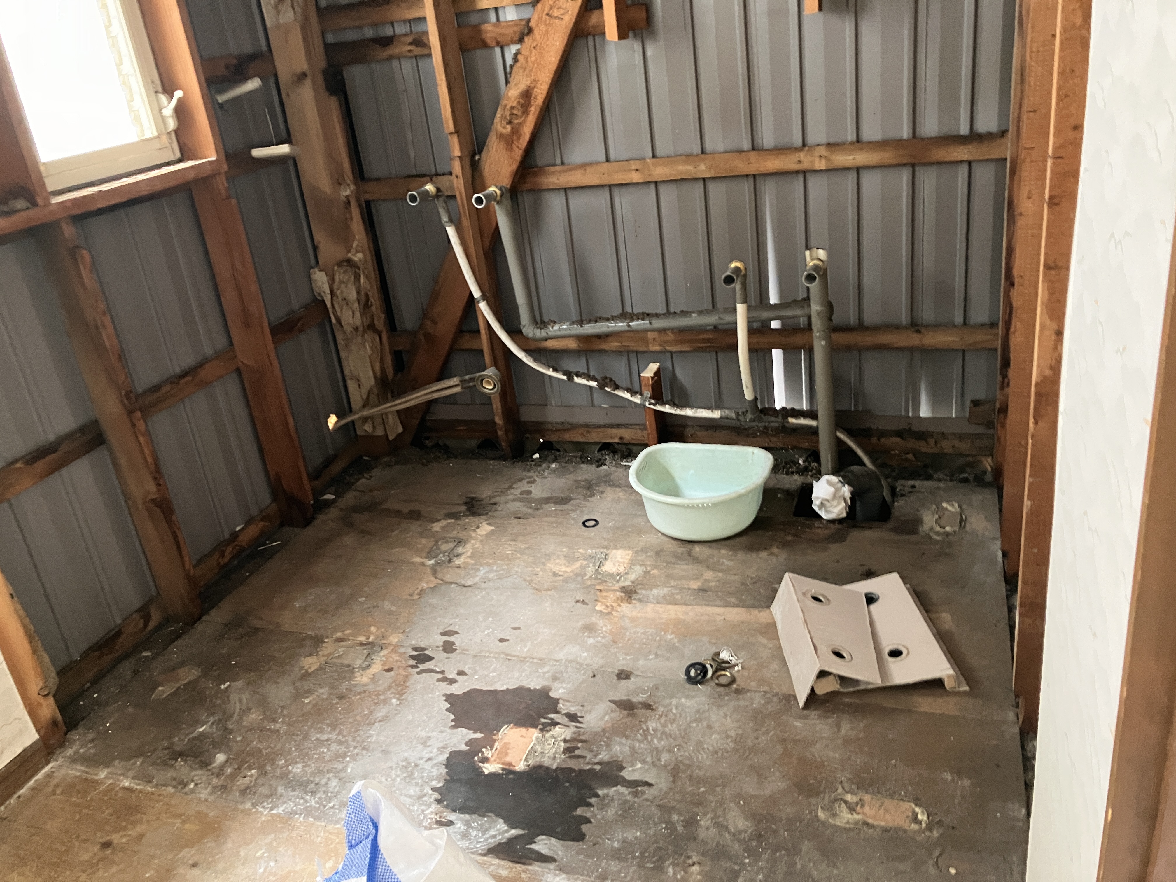 撤去しますとお風呂部分は木材になってました!
