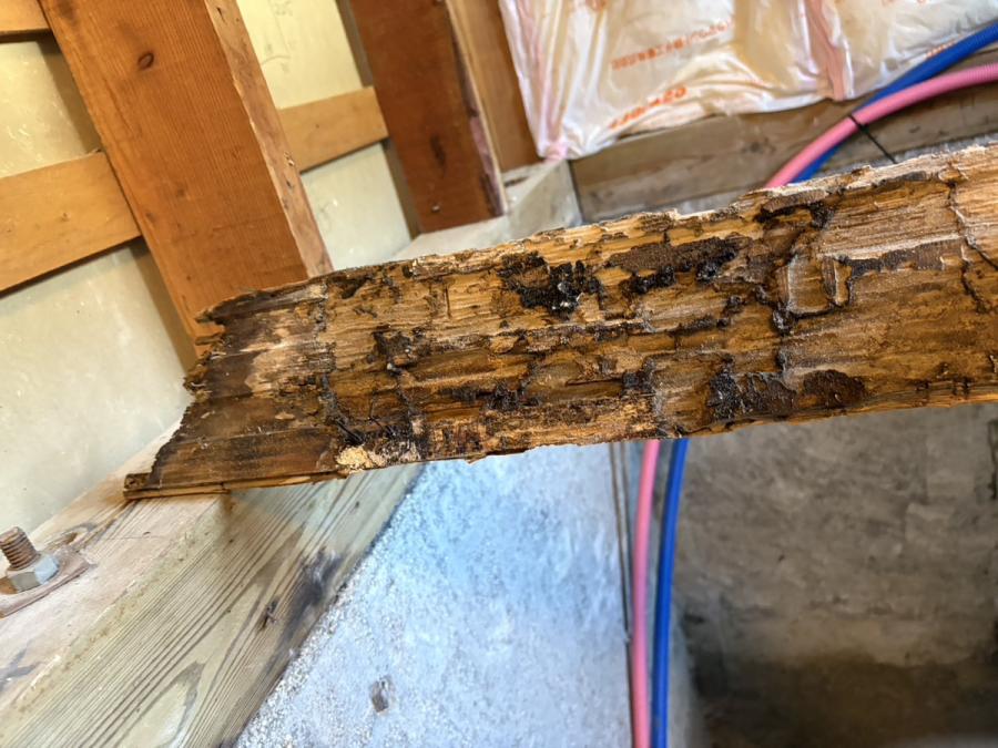 柱がシロアリに食い荒らされ、スカスカになっている。