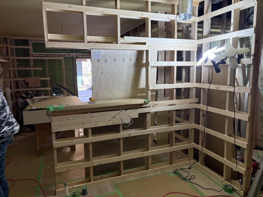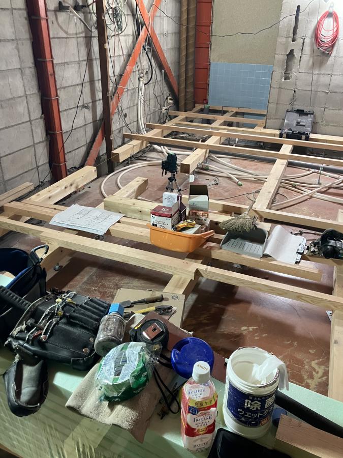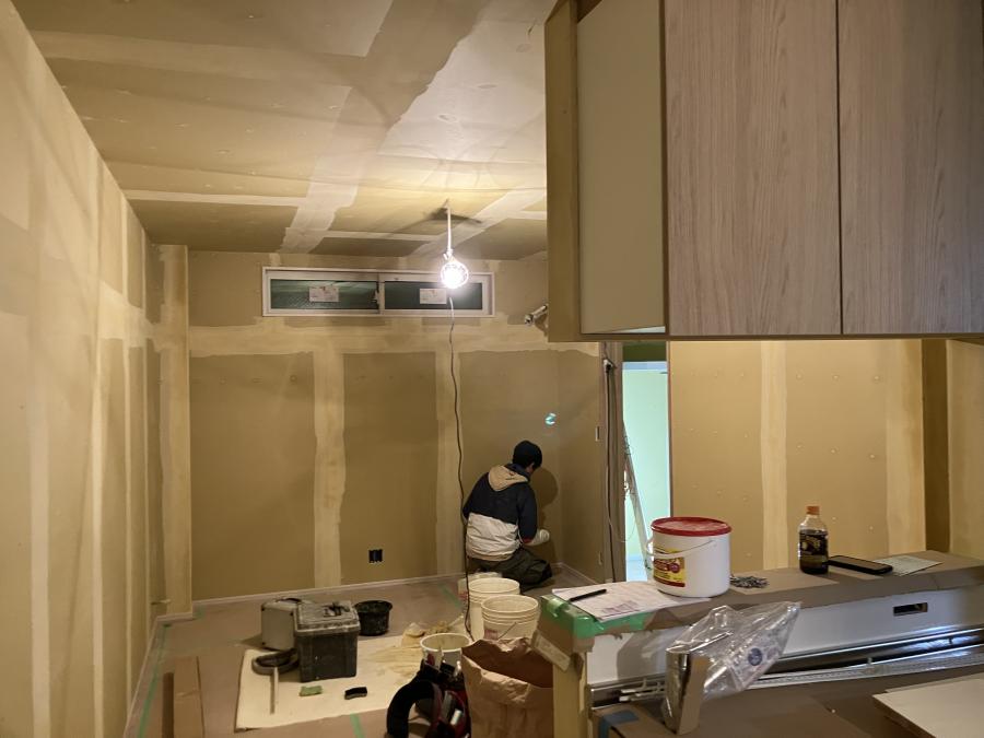 ボードとボードのつなぎ目にパテ処理をしたあと。