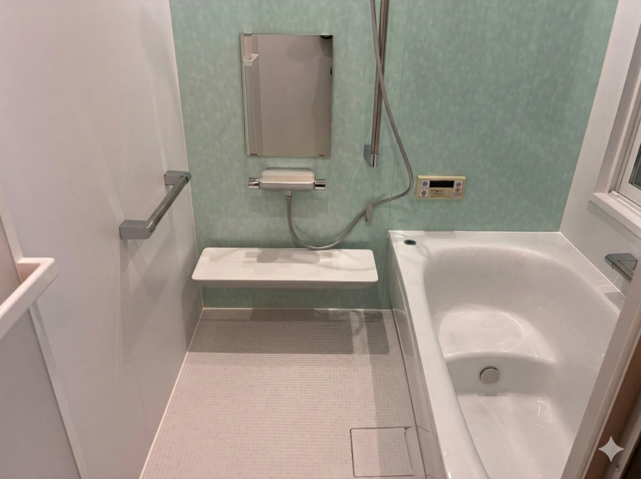 工事は既存浴室の解体から、UB組立完成まで約5日で完了しました。以前より暖かくなり、やわらかい床や手摺で体にも優しくなった新しいお風呂にご満足いただけました。