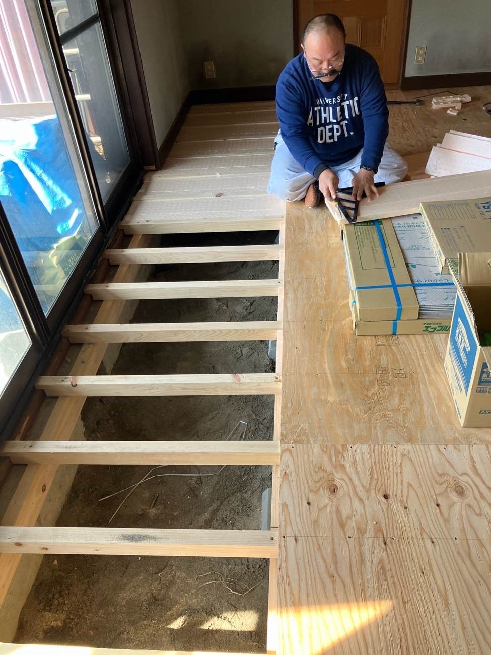 床組、フロア貼り中
