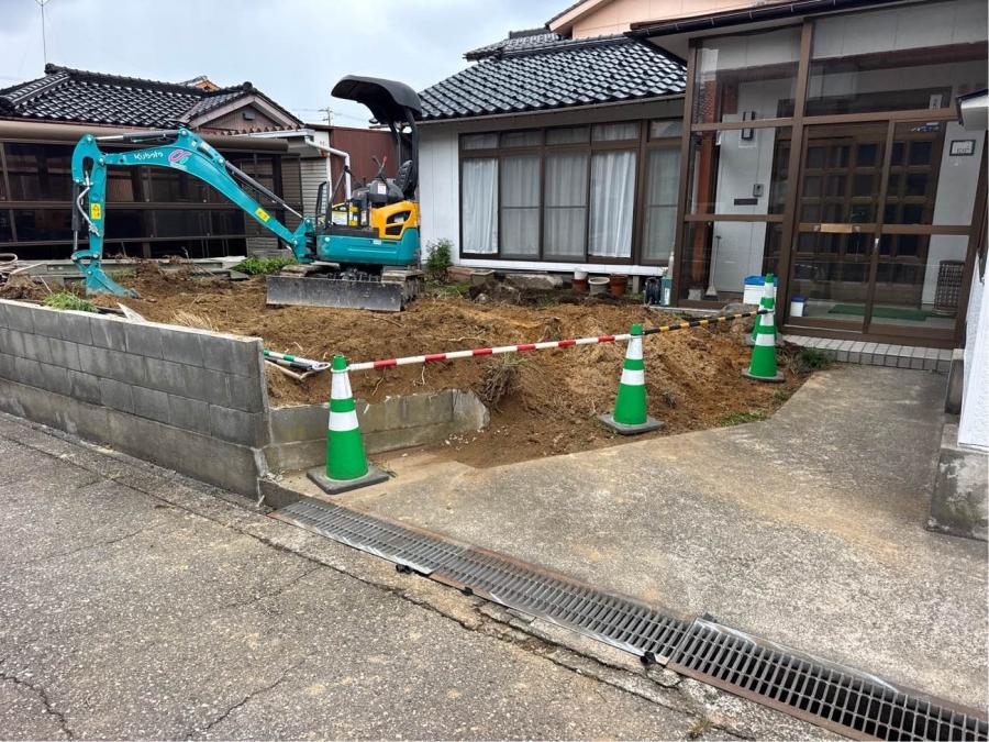 ブロック塀も撤去し前面道路よりも低く残土を処分しつつ
