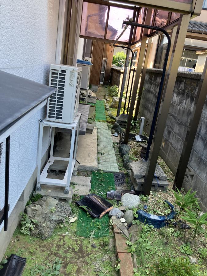 ご新規のお客様からのご依頼でした。隣家のカーポートを解体されたため、お手製の屋外通路が崩れてきそうでしたので撤去させていただきました。