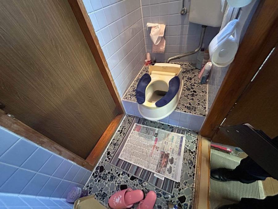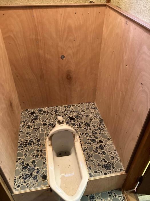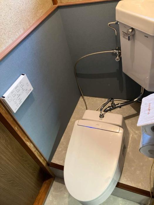 予算は抑えつつウォシュレット式に変えたいとの事で解体はせずに腰掛式にするために和風改造用便器取り付けていきます