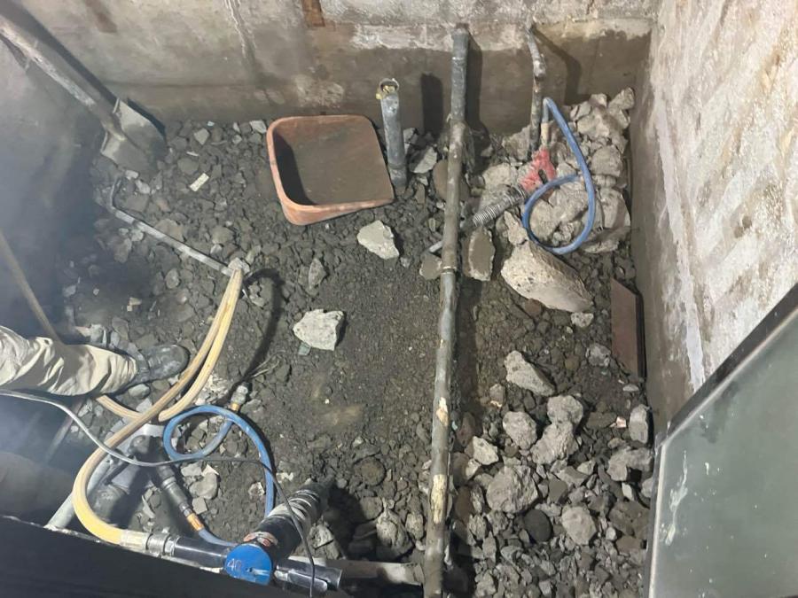 タイル下のコンクリートさらにその下の土砂も漉き取っています。