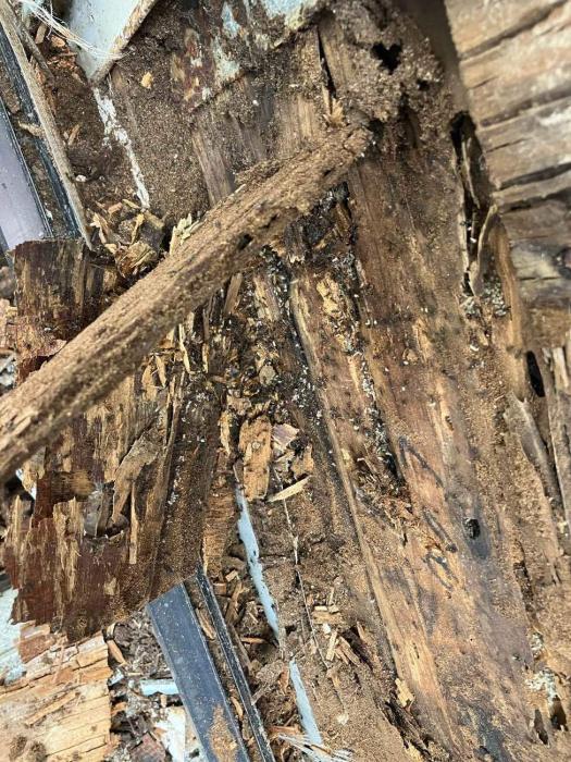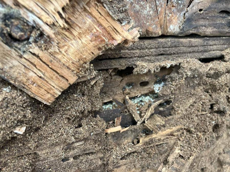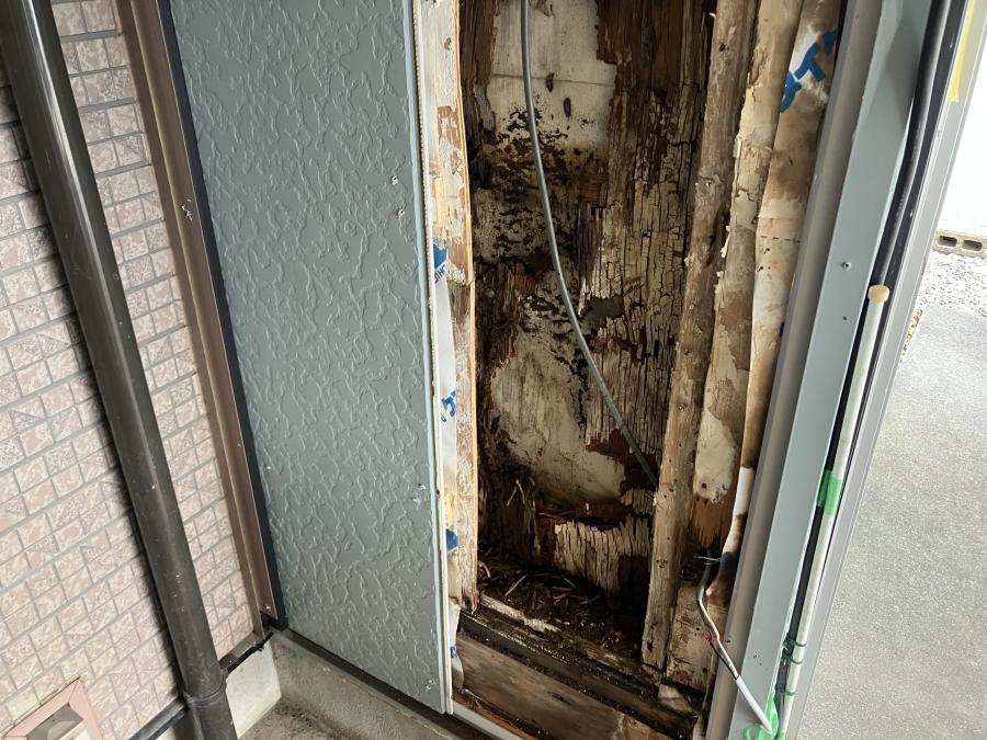柱がシロアリに食い荒らされ、スカスカになっている。
