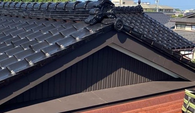 既存の破風板の上から板金を貼り、雨水が分電盤や軒天に侵入しないよう、細部まで丁寧に処理しました。