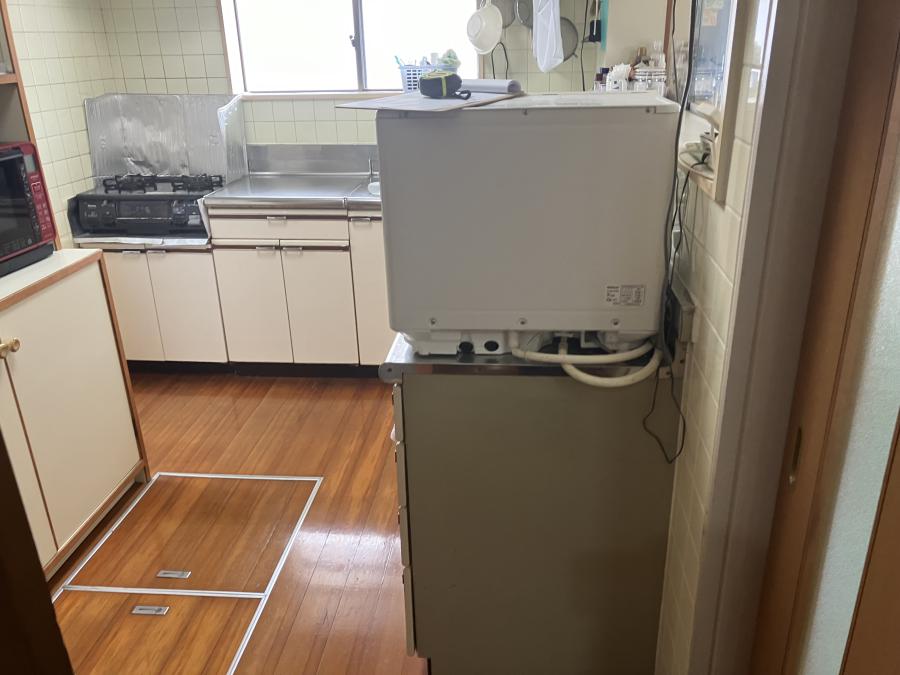 長年使ってきたキッチン。見た目の古さだけでなく、収納やお手入れの面で不便さを感じていました。特に、古いガスコンロ周りの油汚れは日々の掃除の大きな負担に。