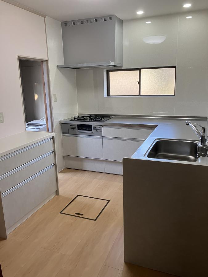 さらに、床材には水濡れに強いリクシル「ラシッサS」(耐水仕様)**を採用し、安心で快適なキッチン空間が完成しました。