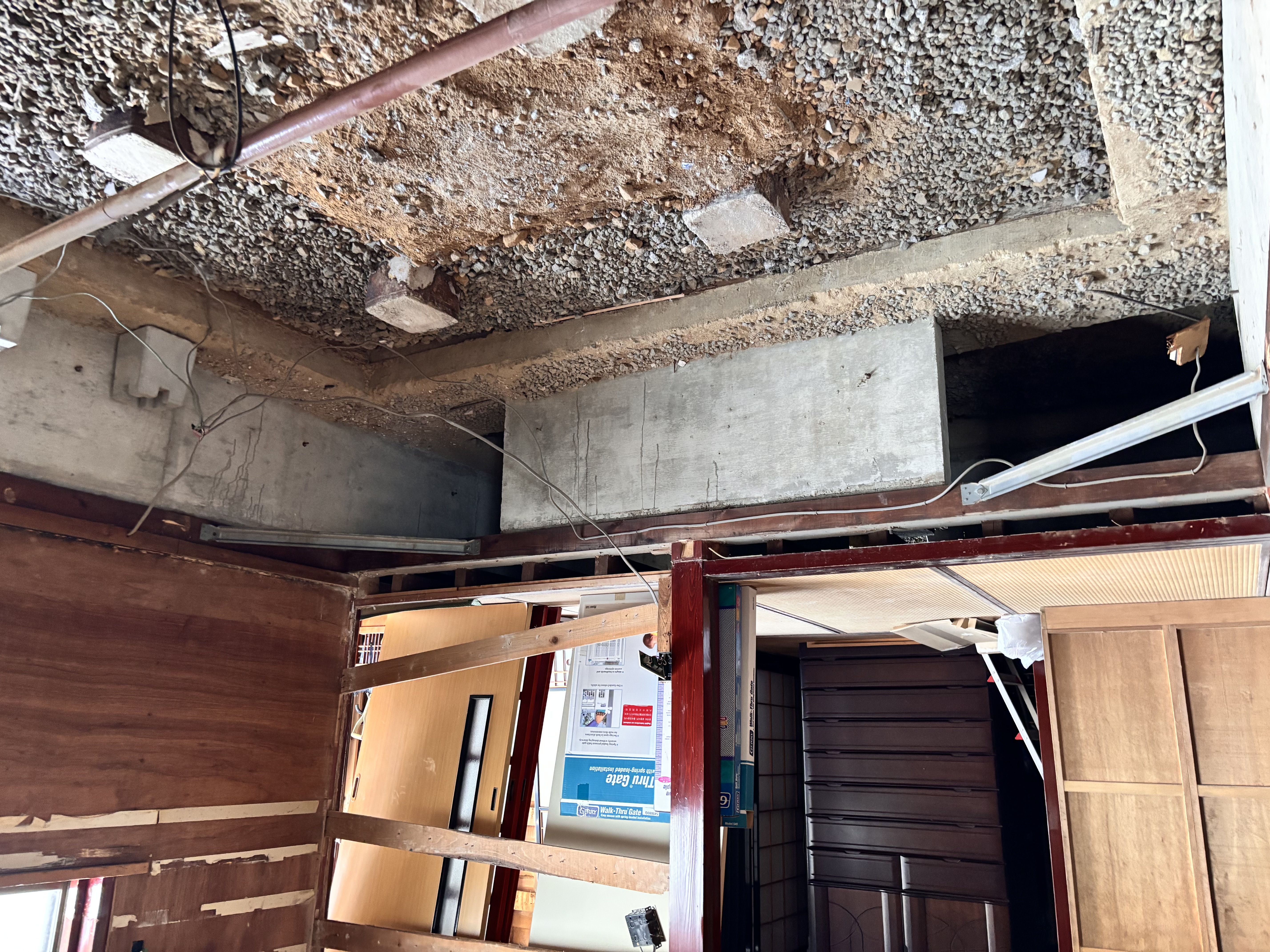 すぐ右横はトイレでして、トイレとの間仕切も補強する為に間仕切壁は全解体しました。