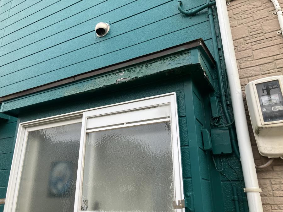 窯業外壁の爆裂や汚れ、特に霧除け(庇)の周りがボロボロになってきて塗装が