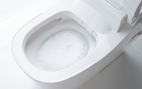 洗剤タンクを内蔵し、流すたびに細かい泡で便器を包み込みます。