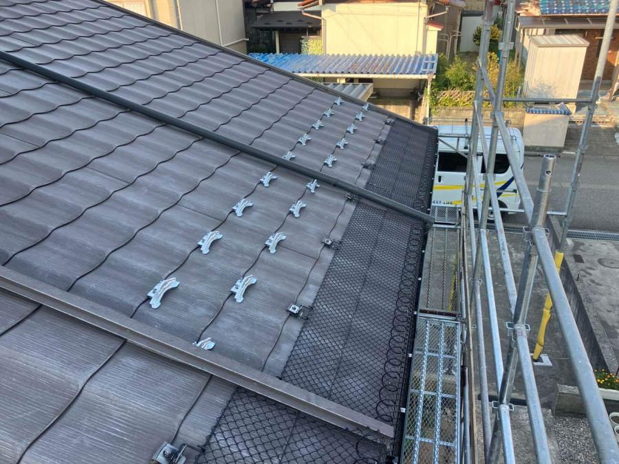 続いてゆきもちくんの施工です。前から落雪がひどくとてもお困りでしたのでゆきもちくんのご提案をさせていただきました。