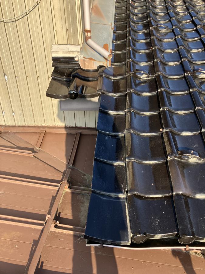 写真の軒先の瓦屋根がフニフニしててなんでだろうと 瓦めくってみたら