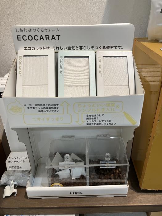 オリバー高岡店にも置いてあるのですが、写真のコーヒー豆の箱の匂いが、エコカラットなしと比べるとかなり減少してます。