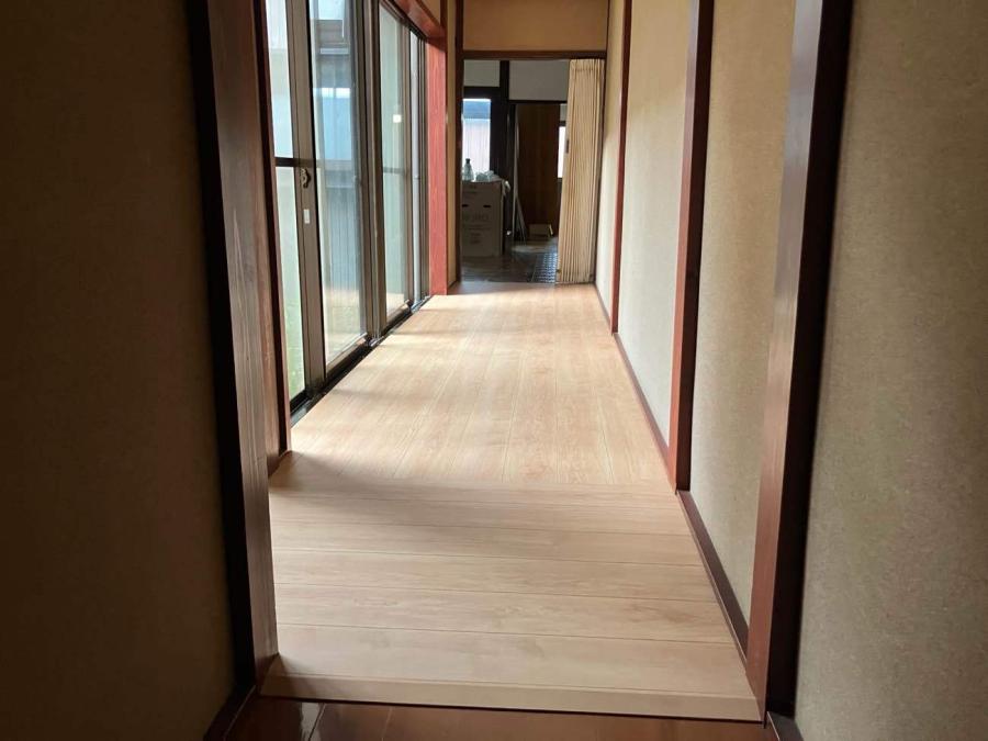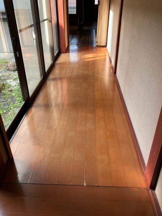 廊下が部分的に歩くと凹むようになり、工事することに。