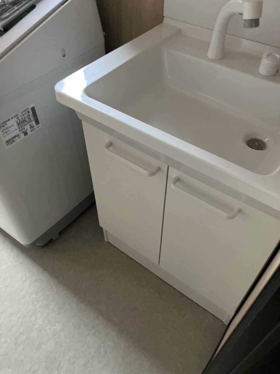 幅600の洗面化粧台を取付ました。これで大きめの洗濯機を置きました。良かったですね。