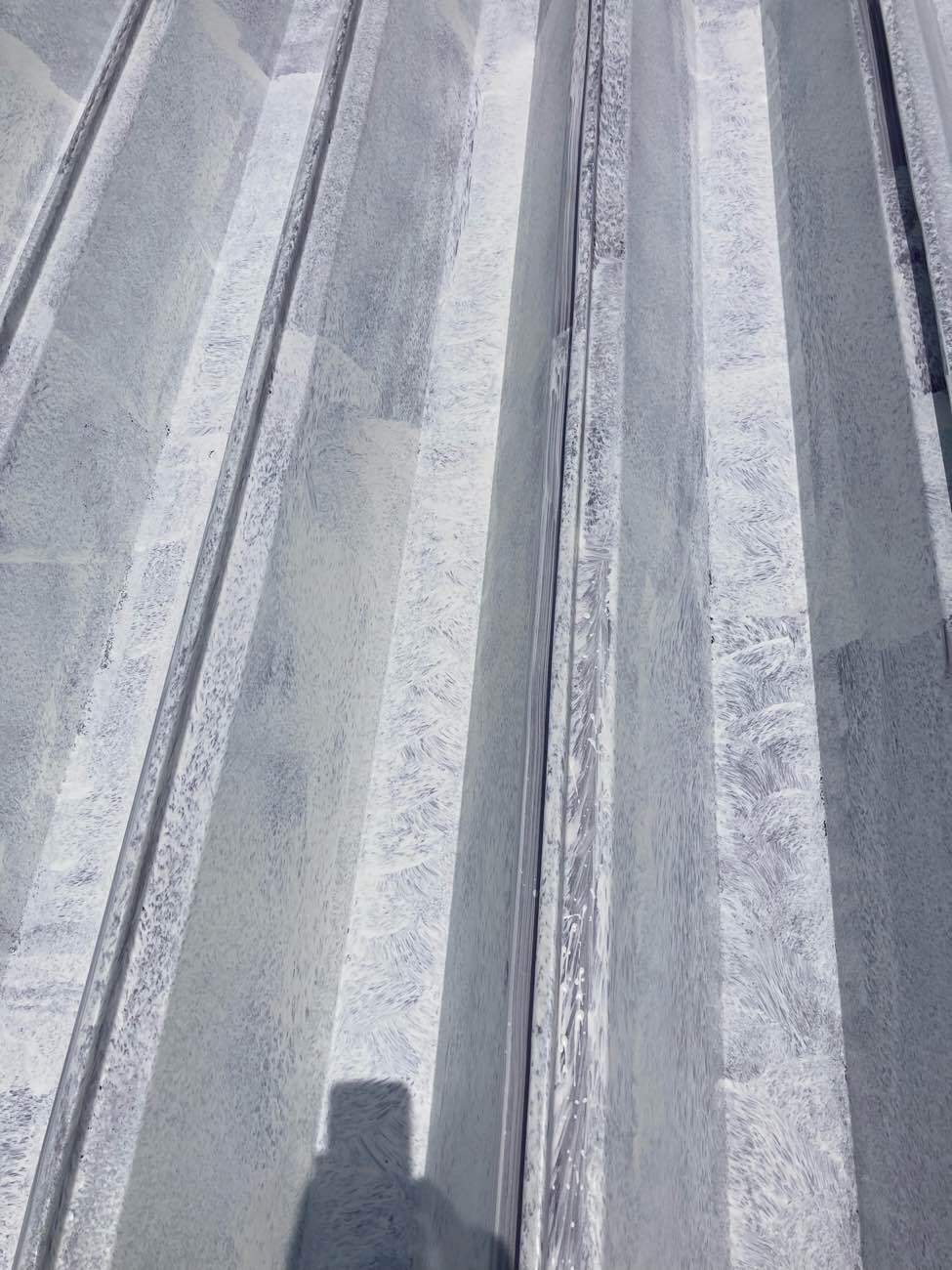 屋根折板は、天候により経年劣化が進み易いため、傷みが酷くなる前の塗装が必要だと思います。普段見えないところほど重視しなければと改めて思いました。