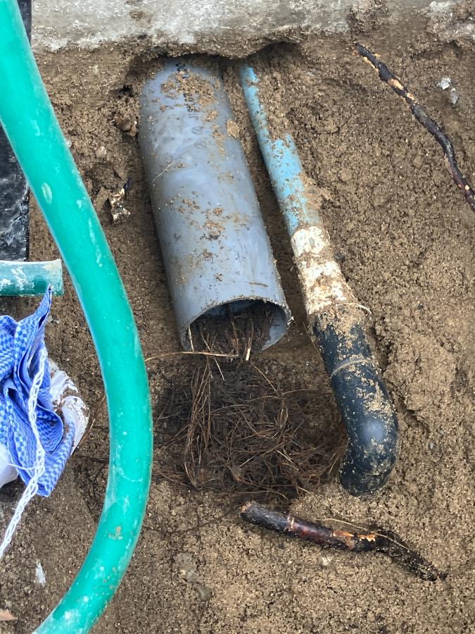 配管を切ってやり替えて排水はきれいに流れるようになりました。