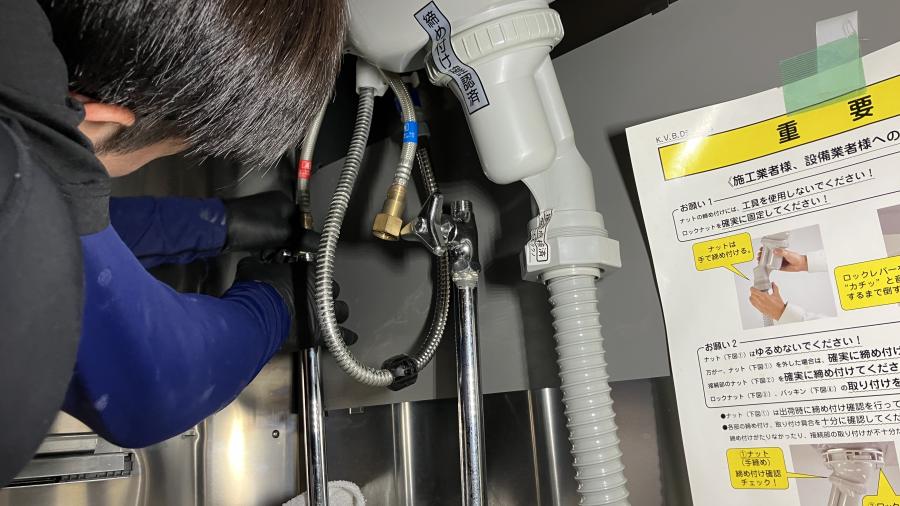 → 水を流して、漏れがないか・センサーが正しく作動するかなどをチェックします。