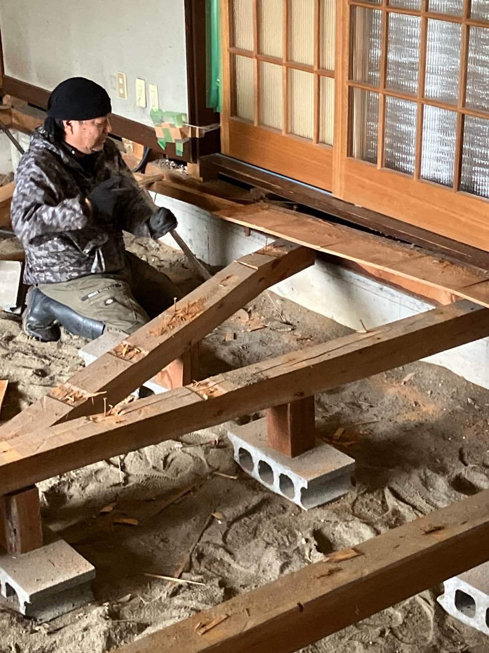 床組、フロア貼り中