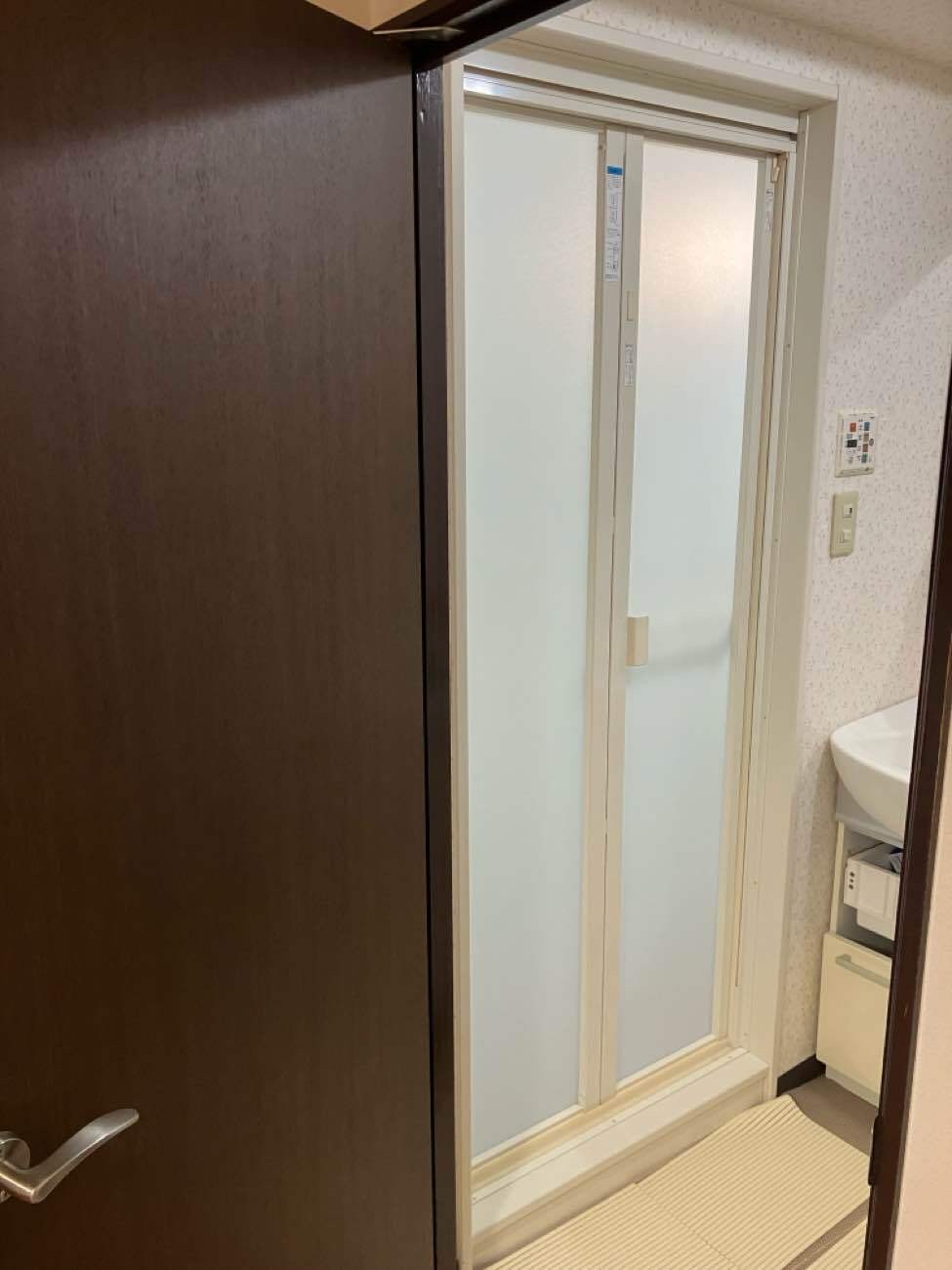 浴室ドアのカバー工法にて折戸や開戸など既存の浴室ドアに対応して交換が可能です。