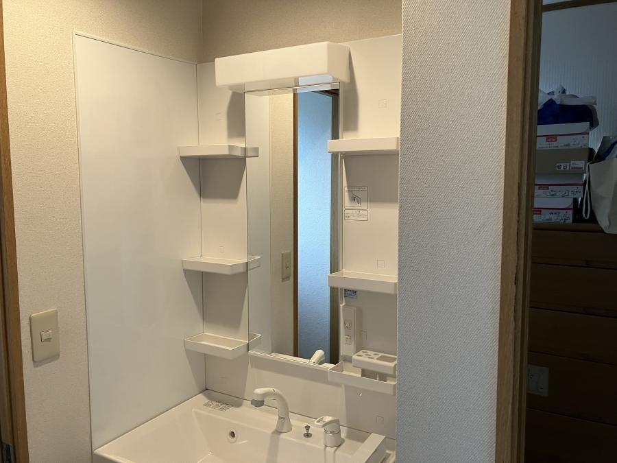 ・洗面横の壁に水が飛んで、汚れやすいのが気になる